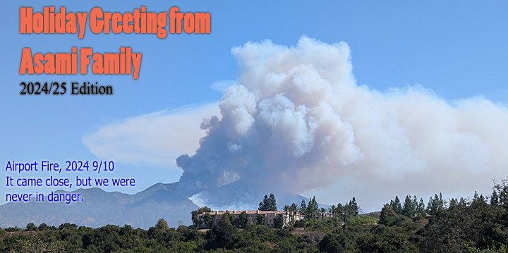 Welcome to Asami Family Home Page 2024/2025 edition. Yes, it's been a shile since I updated this page, but I'm back. The first Folder "Family Album" has brief story of me and Akiko in the course of year. Next is "Japan Trip 2024", yes, we went back to our home world again this year. This is third year of my mother's passing, and we also visited Akiko's family cemetary too. We did have some fun while there, as you can see. Though we missed the cherry blossoms (last year was one of the greatest), we love our home town of Yokohama. In "Dodgers" page, are pictures from Dodger Stadium on late August, when they were giving away Ohtani's Bobbleheads. The game was pretty intense and fun, too. In "Food" page are pictures of some good eats we had in the course of the year. We love good food, and we'd like to share them with you.